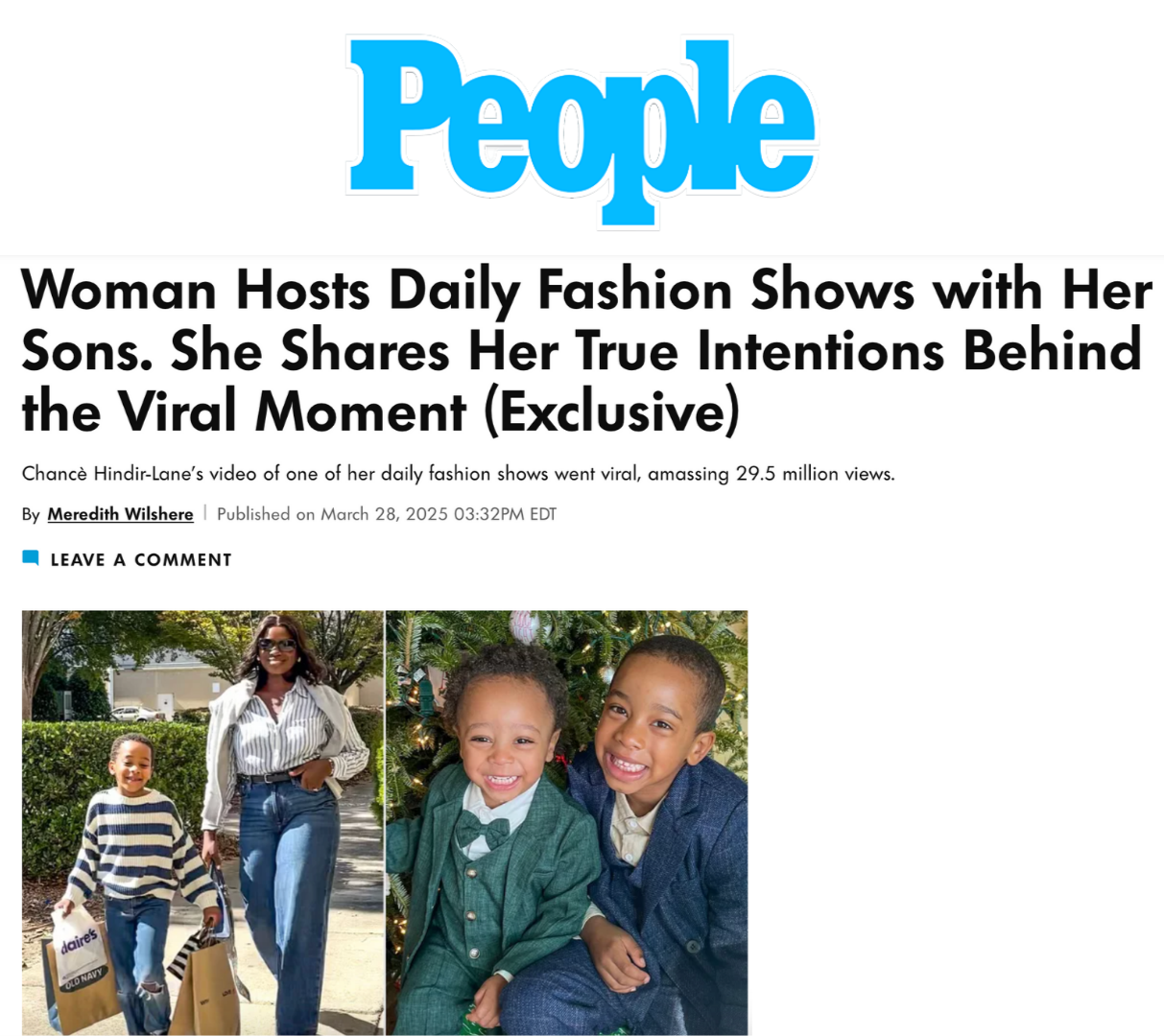Chancè’s video of one of her son’s daily fashion shows went viral, amassing 29.5 million views and growing.